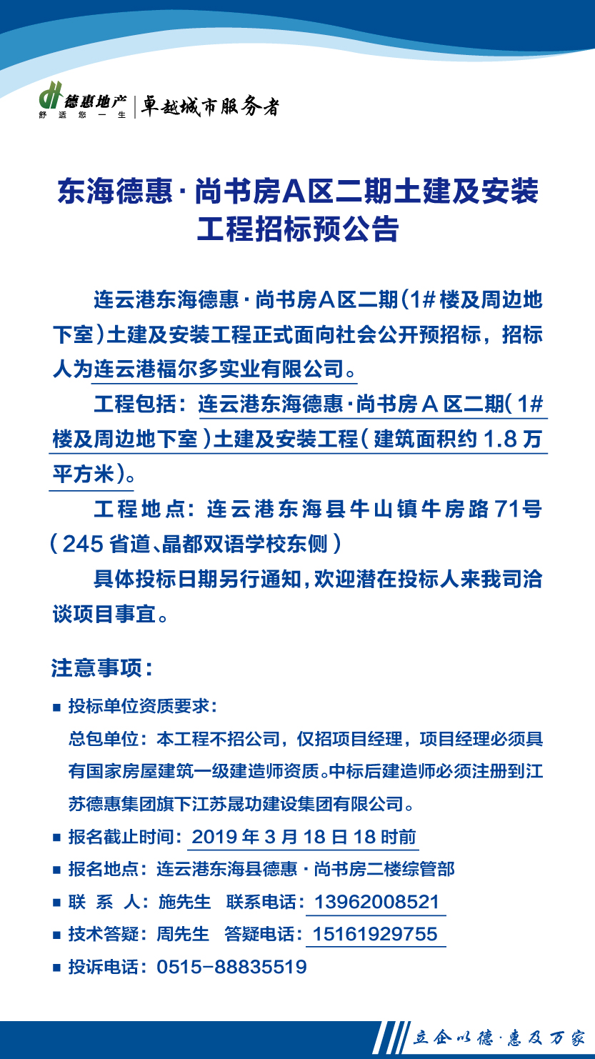 東海德惠·尚書房A區(qū)二期土建及安裝工程招標(biāo)預(yù)公告