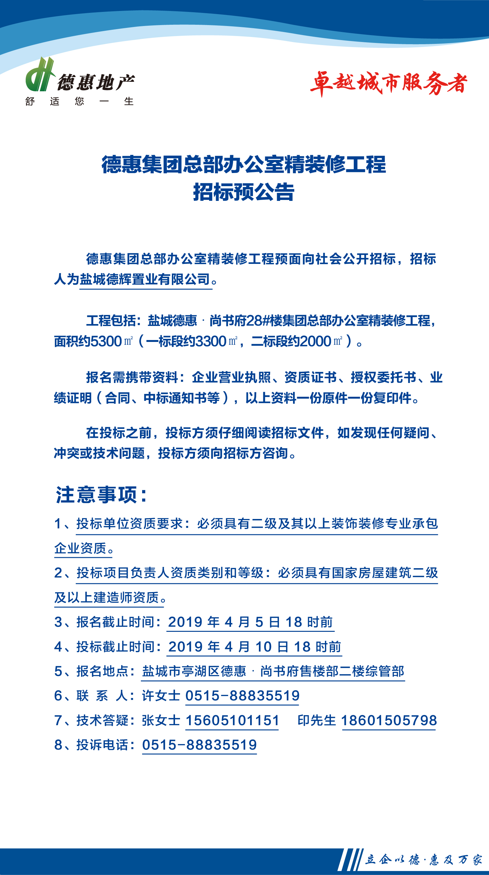 德惠集團總部辦公室精裝修工程招標(biāo)預(yù)公告