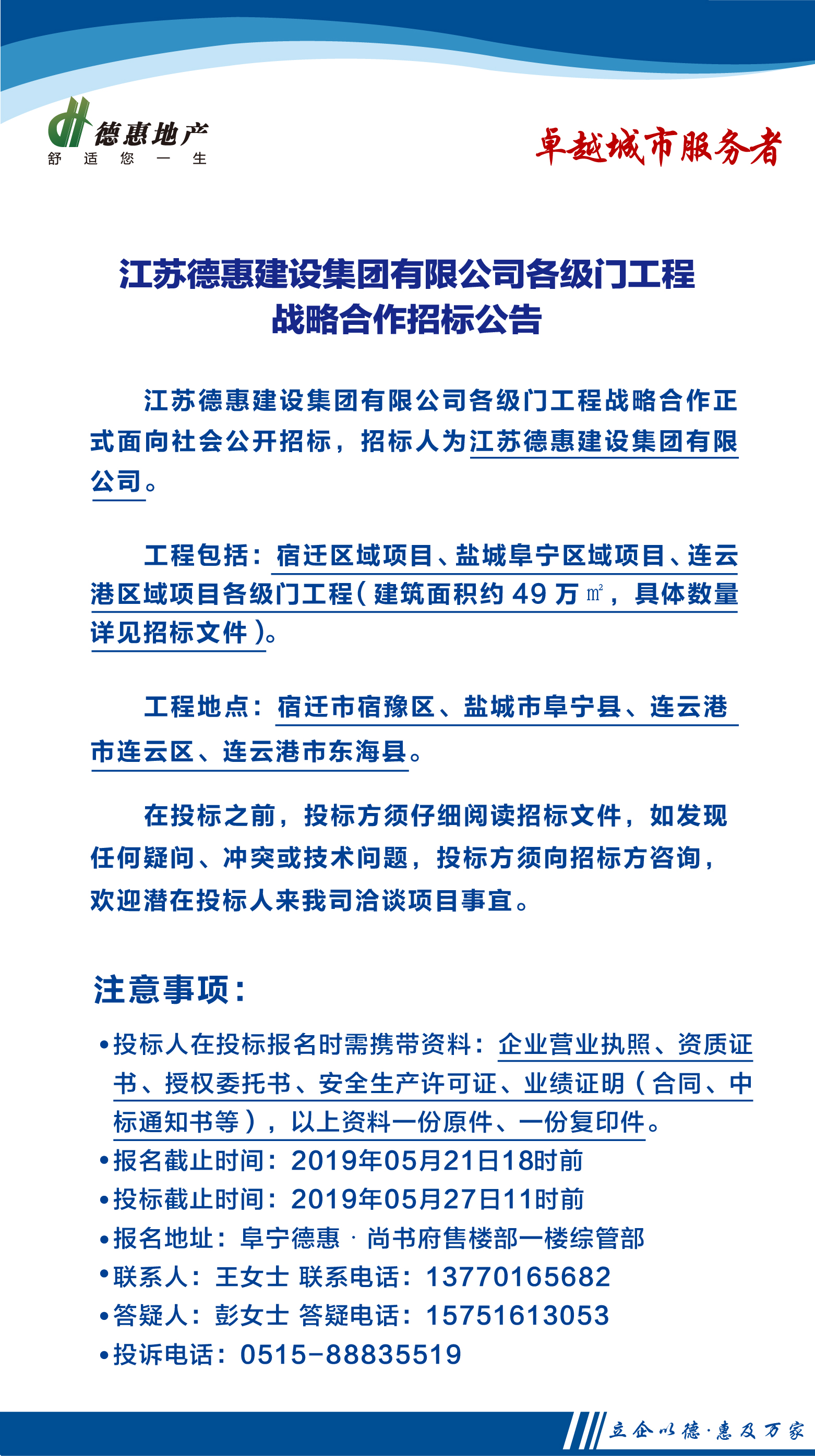 江蘇德惠建設(shè)集團(tuán)有限公司各級門工程戰(zhàn)略合作招標(biāo)公告