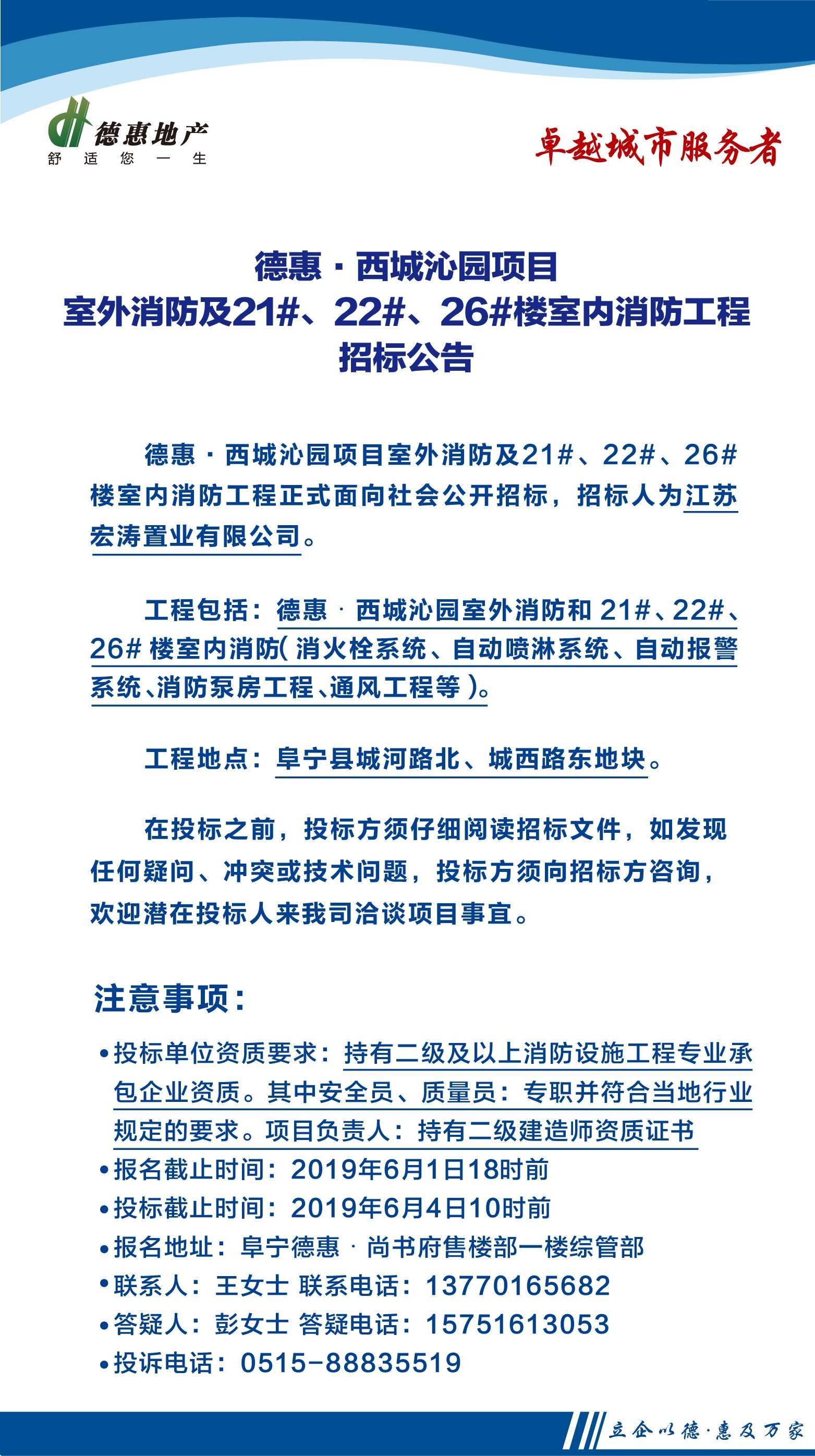 德惠·西城沁園項目室外消防及21#、22#、26#樓室內(nèi)消防工程招標公告