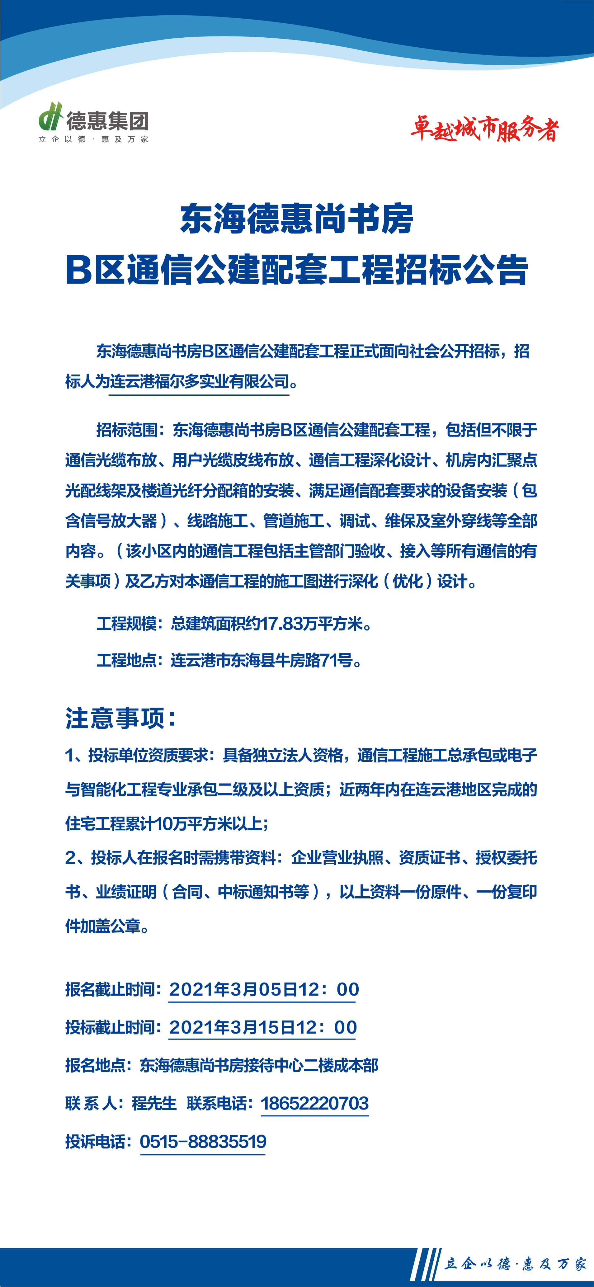 東海德惠尚書房B區(qū)通信公建配套工程招標(biāo)公告