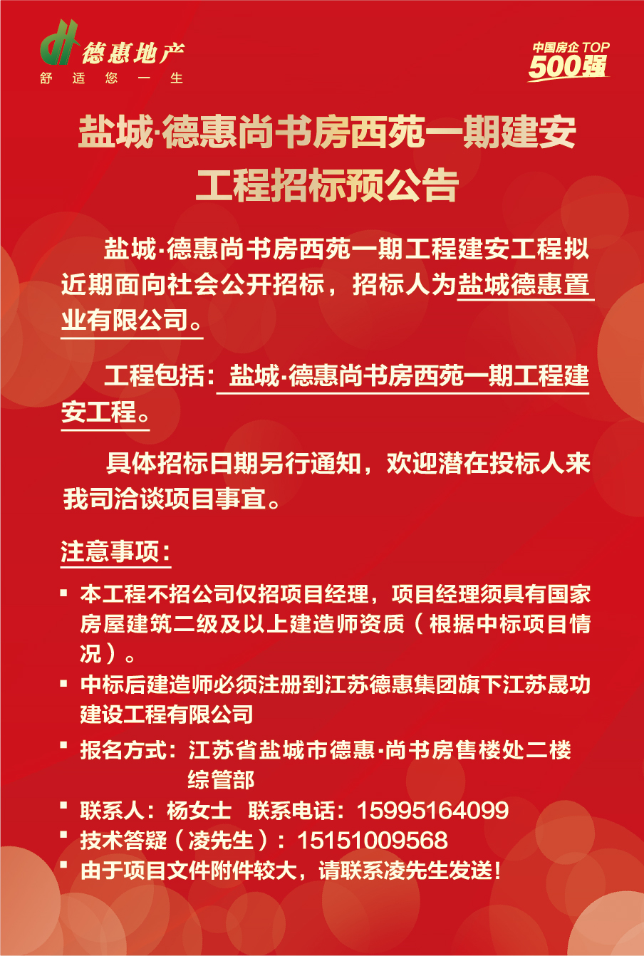 鹽城德惠尚書房西苑一期建安工程招標(biāo)預(yù)公告