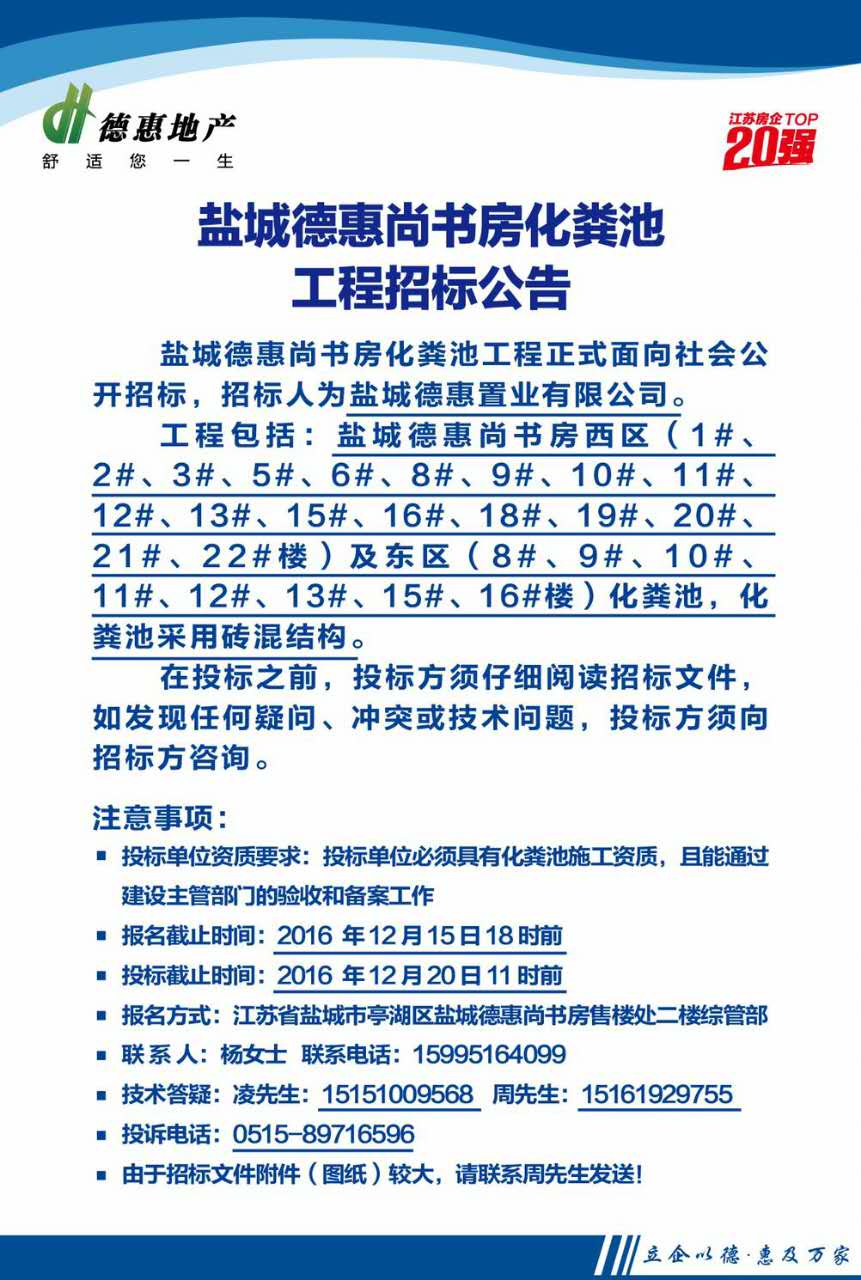 鹽城德惠尚書房化糞池工程招標公告
