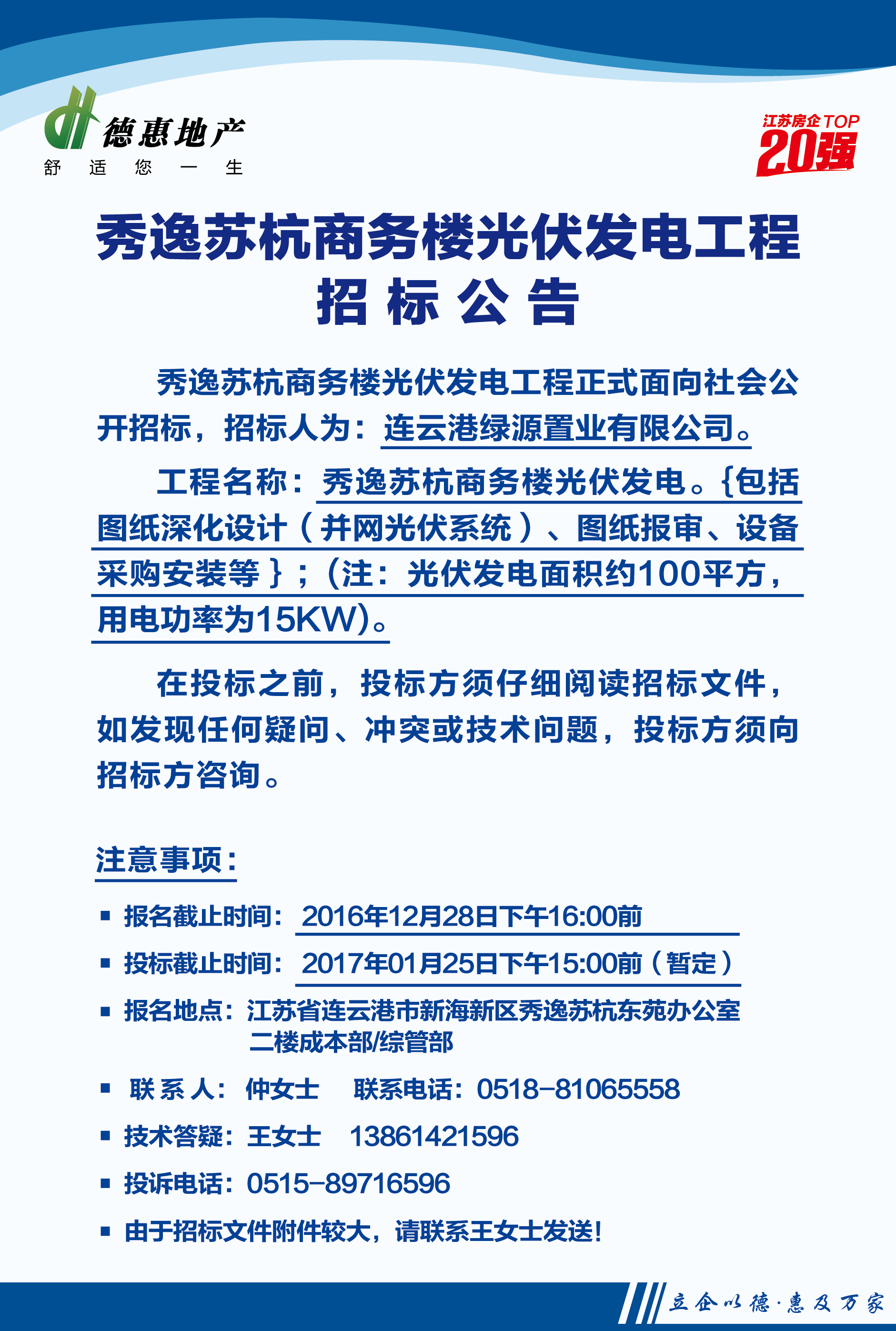 連云港﹒秀逸蘇杭商務(wù)樓光伏發(fā)電工程招標公告