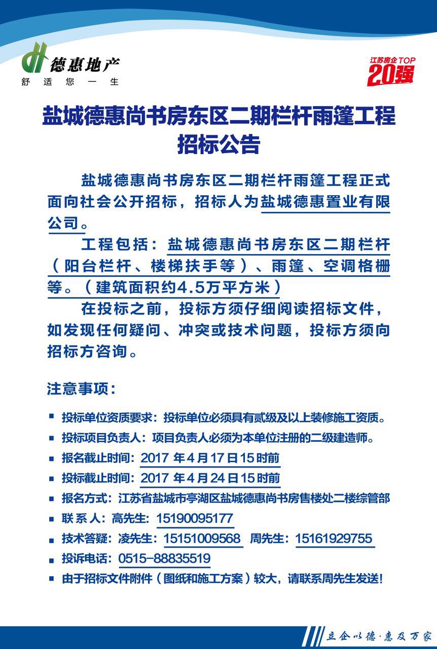 鹽城德惠尚書房東區(qū)二期欄桿雨篷工程招標(biāo)公告