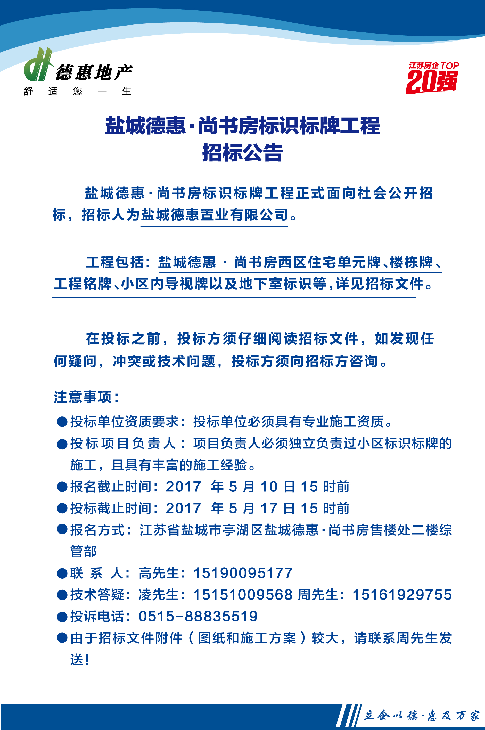 鹽城德惠·尚書房標(biāo)識(shí)標(biāo)牌工程招標(biāo)公告
