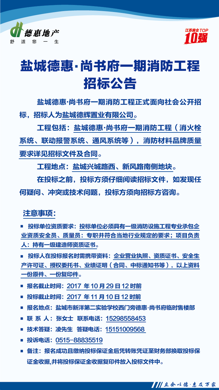 鹽城德惠·尚書(shū)府一期消防工程招標(biāo)公告