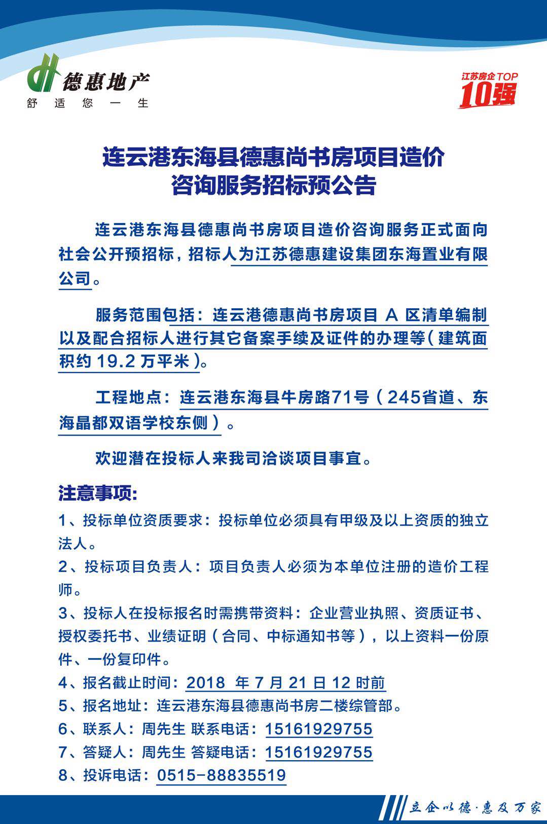 連云港東??h德惠尚書(shū)房項(xiàng)目造價(jià)咨詢(xún)服務(wù)招標(biāo)預(yù)公告