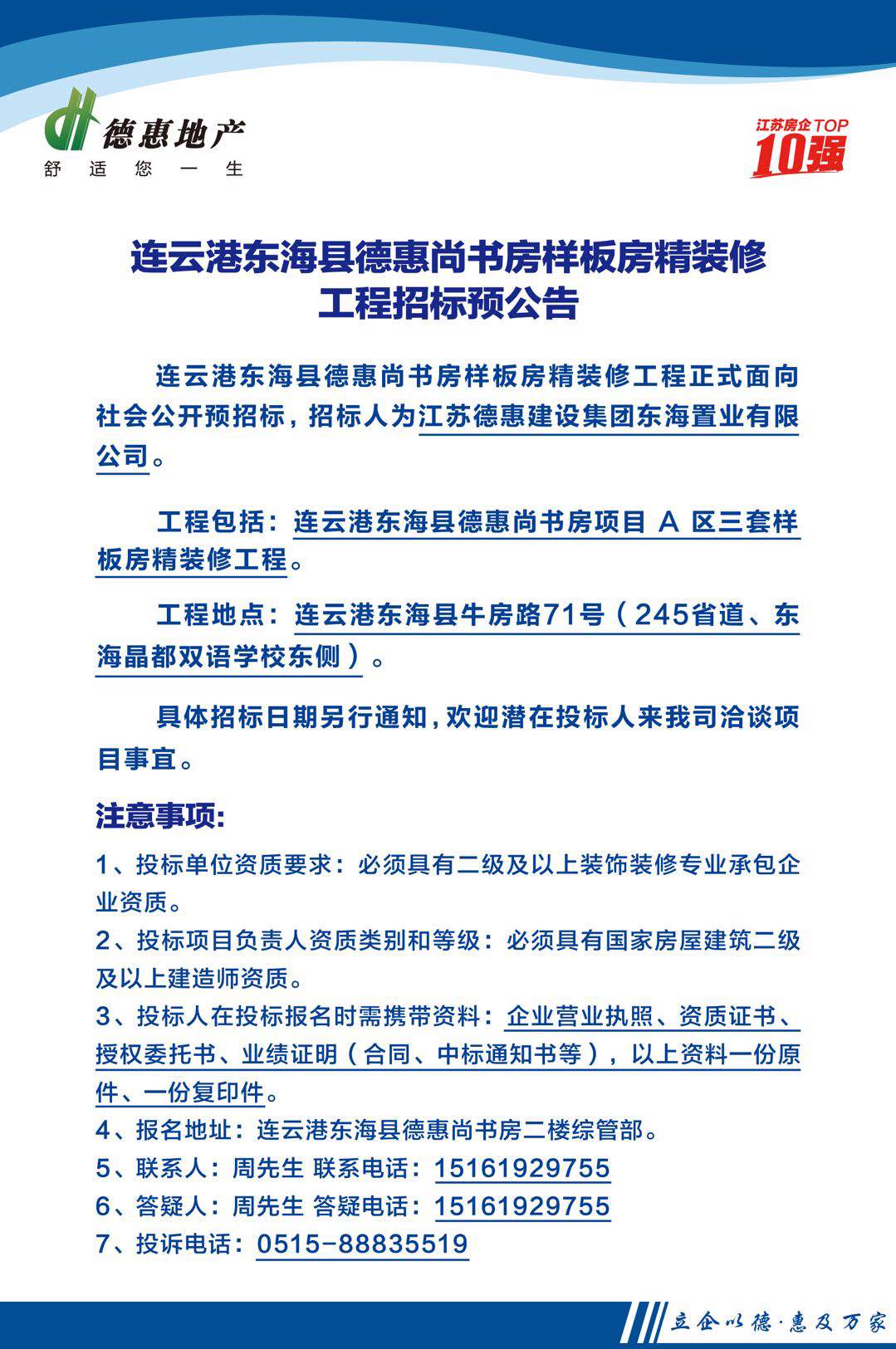 連云港東??h德惠尚書(shū)房樣板房精裝修工程招標(biāo)預(yù)公告