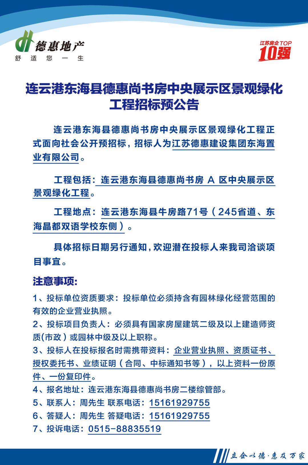 連云港東??h德惠尚書房中央展示區(qū)景觀綠化工程招標(biāo)預(yù)公告