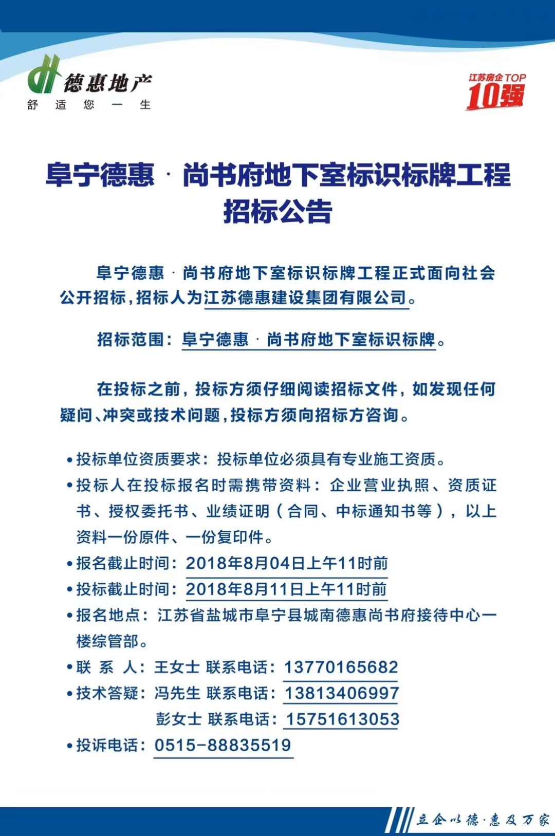 阜寧德惠·尚書府地下室標識標牌工程招標公告