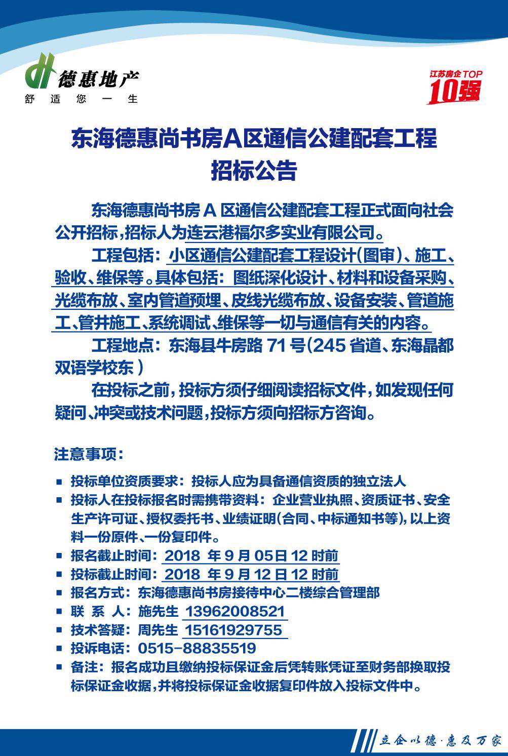 東海德惠尚書房A區(qū)通信公建配套工程招標公告