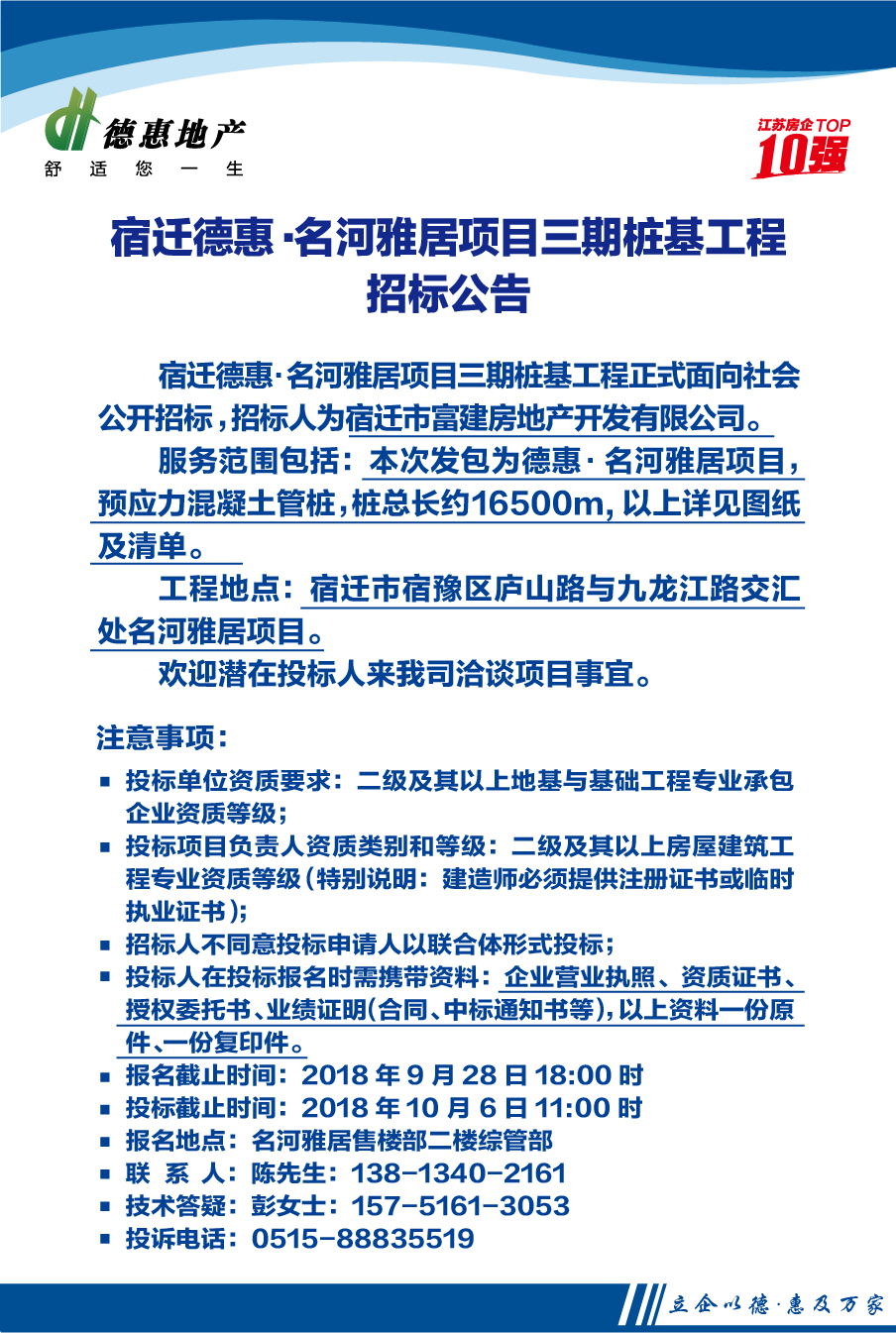 宿遷德惠·名河雅居項目三期樁基工程招標公告