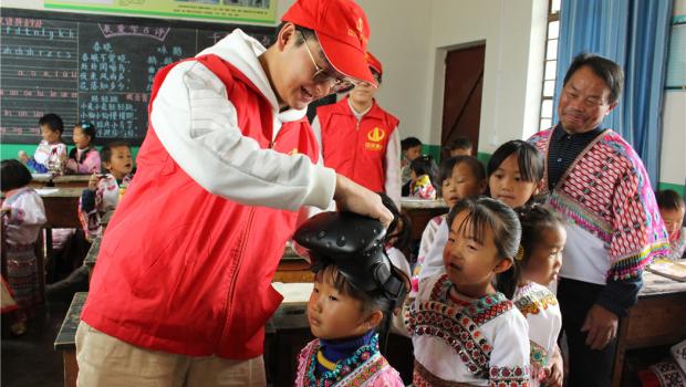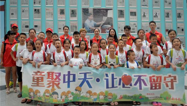 童聚中天讓心不留守活動(dòng),六建志愿者與小候鳥們合影