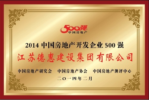 日前,江蘇房地產(chǎn)業(yè)界傳來喜訊:中國房地產(chǎn)研究會、中國房地產(chǎn)業(yè)協(xié)會、中國房地產(chǎn)測評中心聯(lián)合授予江蘇德惠集團“2014中國房地產(chǎn)開發(fā)企業(yè)500強”稱號。金色的獎牌昭示著德惠集團“勵精圖治、務實創(chuàng)新”的企業(yè)精神,也體現(xiàn)出德惠人“艱辛成就偉業(yè),奮斗創(chuàng)造輝煌”的企業(yè)信念。