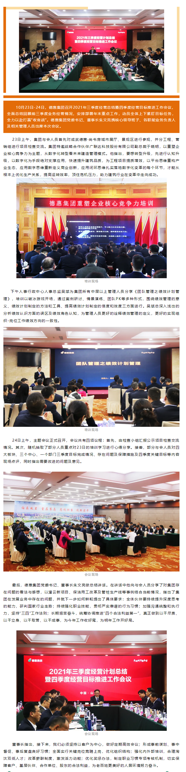 立足自身 實干有為 | 德惠集團召開三季度經營總結暨四季度經營目標推進工作會議
